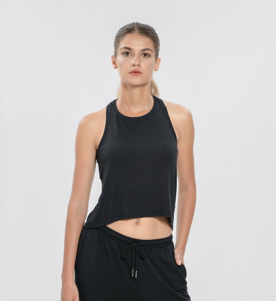 クロップ丈のシンプルなデザインは、ハイウエストのボトムスと相性抜群。